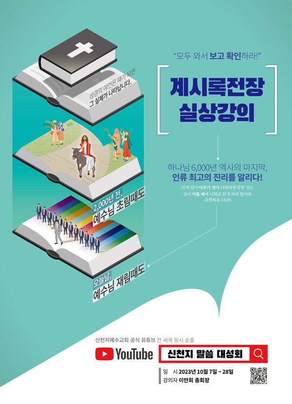 私のように天国を望み信仰する聖徒の皆さん、時期に行う新天地御言葉大聖会を通じて今まで出会えなかった天国を見てみて下さい。