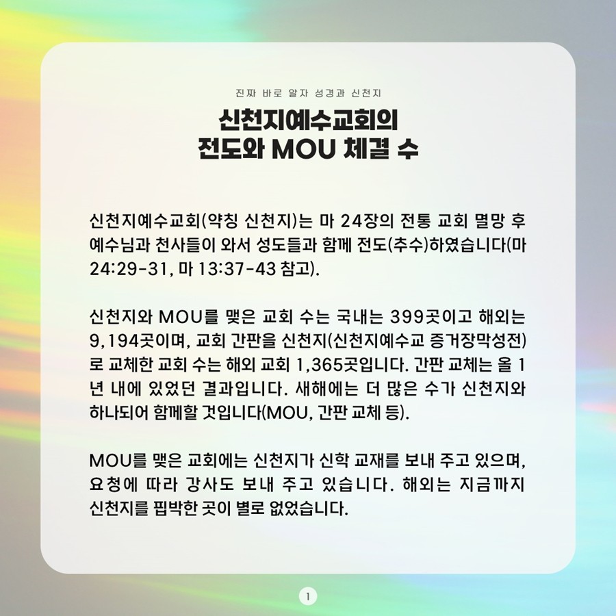 今年の4‐6月にあったイ・マンヒ総会長が講義した新天地御言葉大聖会と全国12ヶ所の地域で同時に行われた新天地12枝派御言葉大聖会にも数多い方々が参加しました。